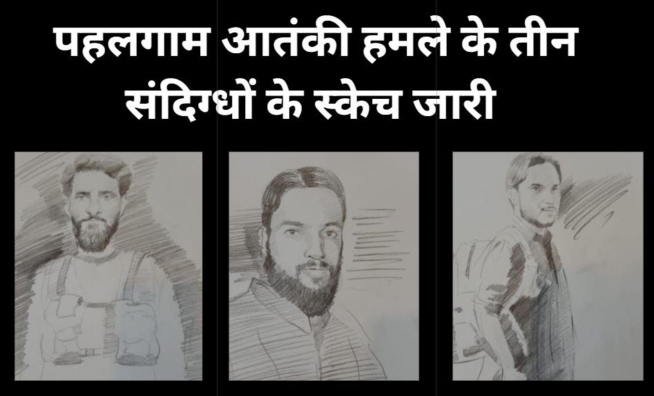 जम्मू-कश्मीर के शांत और मनमोहक पहलगाम में हुए खूनी आतंकी हमले के बाद पूरे देश में आक्रोश की लहर है। हमले में कई निर्दोष पर्यटकों की जान जाने के बाद अब सुरक्षा एजेंसियों ने अपनी कार्रवाई को तेज करते हुए इस बर्बर वारदात में शामिल तीन संदिग्ध आतंकियों की पहचान कर ली है। इन तीनों के स्केच आज सार्वजनिक किए गए, जो हमले से बचे चश्मदीदों की मदद से तैयार किए गए हैं।
