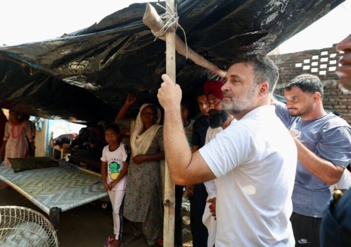 Punjab continues to grapple with the aftermath of unprecedented floods that ravaged 23 districts, submerging nearly 1.92 lakh hectares of crops and displacing thousands of families. The death toll stands at 56 as state administrations and relief agencies fight a hard battle to rehabilitate affected communities and restore livelihoods. On 15 September, Congress leader and Lok Sabha Leader of Opposition Rahul Gandhi arrived in Amritsar to personally observe the devastation, sparking renewed hope among flood victims and flood-affected farmers. Gandhi’s first stop was Ghonewal village, recently devastated by a breach in a flood bund, where he listened to harrowing accounts of homes washed away and crops destroyed. His empathetic outreach included meetings with local farmers and discussions on accelerating relief measures. The visit plans to extend across the border districts of Gurdaspur, Pathankot, and Tarn Taran, focusing on long-term rehabilitation and demands for transparent fund utilization. Amidst political debates on relief fund management, Gandhi’s presence has been described as “a significant morale booster” by local Congress workers, with calls to hold the state government accountable for flood preparedness and urban planning failures. Criticism has spotlighted excessive construction near rivers and delayed embankment maintenance leading to the floods’ scale. As Punjab slowly recovers, the focus remains on ensuring adequate aid distribution and rehabilitating the state’s vital agricultural economy, which suffered catastrophic damage during the crisis. This is a web generated news report.