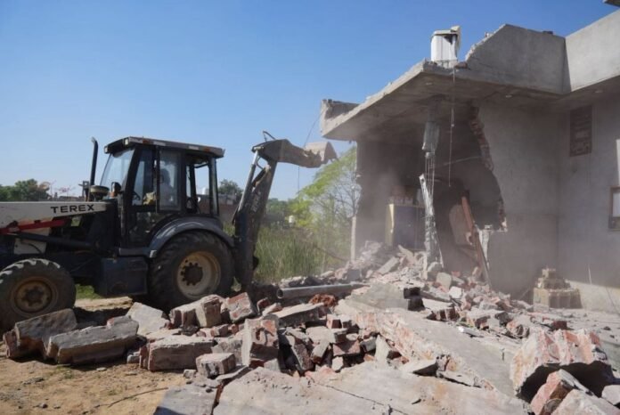 अमृतसर, भारत-पाकिस्तान अंतरराष्ट्रीय सीमा से सटे गांव जठूल में पंजाब सरकार द्वारा चलाए जा रहे ‘ड्रग्स पर वार’ अभियान के तहत नशा तस्कर गुरप्रीत सिंह उर्फ बिल्ला पुत्र सरदार बीर सिंह सिंह निवासी गांव जठूल, थाना घरिंडा के नशा बेचकर बनाए गए आलीशान मकान पर बुलडोजर चलाकर साफ कर दिया है कि नशा तस्करों के खिलाफ किसी भी तरह की नरमी नहीं बरती जाएगी। जिला पुलिस प्रमुख सरदार मनिंदर सिंह ने बताया कि उक्त तस्कर के खिलाफ विभिन्न थानों में एनडीपीएस व अन्य एक्ट के तहत 6 मामले दर्ज हैं। उन्होंने बताया कि वह नशा तस्करी के मामलों में नामजद है वह 10 साल की सजा काट रहा है। उन्होंने बताया कि आरोपी द्वारा नशा तस्करी की काली कमाई से सरकारी जमीन पर अवैध रूप से बनाए गए विशाल मकान को गिरा दिया गया है। उन्होंने कहा कि मुख्यमंत्री भगवंत सिंह मान ने नशा तस्करों को कड़ा संदेश दिया है कि या तो वे यह तस्करी का धंधा छोड़ दें या पंजाब छोड़ दें। उन्होंने कहा कि उक्त नशा तस्कर ने पंजाब सरकार की संपत्ति पर अतिक्रमण करके यह निर्माण किया था और इसी के खिलाफ कार्रवाई करते हुए आज गांव जठोल में उक्त नशा तस्कर की संपत्ति पर बुलडोजर चलाया गया। उन्होंने कहा कि पंजाब पुलिस नशा तस्करों के खिलाफ व्यापक अभियान चला रही है, जिसमें सीमा पार से तस्करी के अलावा छोटे स्तर पर नशे की खरीद-फरोख्त के खिलाफ भी कार्रवाई शुरू की गई है। उन्होंने कहा कि लगातार बड़ी बरामदगी हो रही है । मुख्यमंत्री व डीजीपी गौरव यादव का स्पष्ट संदेश है कि इस गंभीर मुद्दे पर किसी भी नशा तस्कर के साथ कोई नरमी नहीं बरती जाएगी और जो भी दोषी पाया जाएगा, उसके खिलाफ सख्त से सख्त कार्रवाई की जाएगी। उन्होंने नशा तस्करों को फटकार लगाते हुए कहा कि वे हमारी युवा पीढ़ी को बर्बाद करना बंद करें, अन्यथा उनके खिलाफ भी ऐसी ही बड़ी कार्रवाई की जाएगी।
