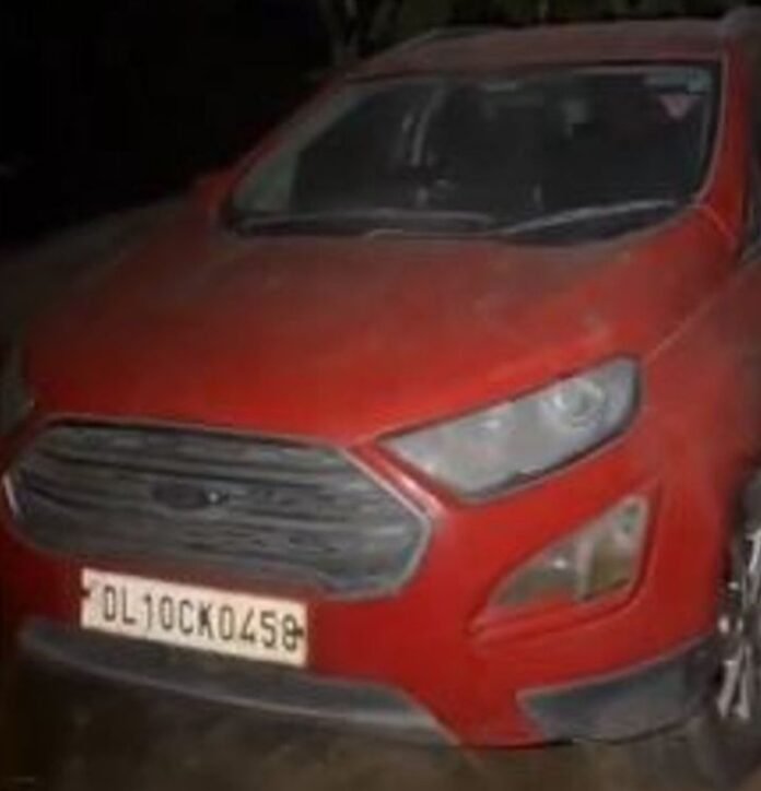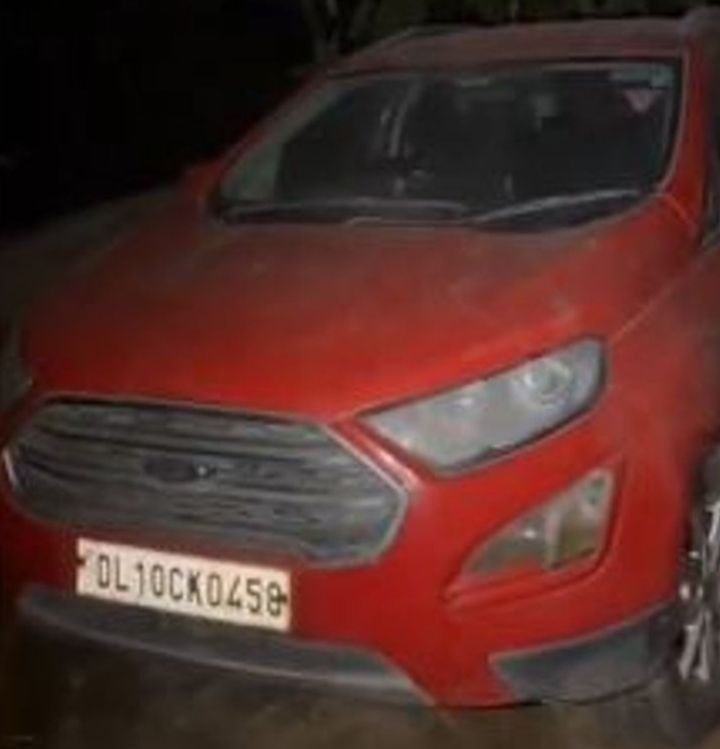 Another vehicle, a Ford EcoSport with registration number DL10 CK 0458, was found abandoned late Wednesday night in Faridabad. Police detained a young man who was found asleep inside the car, and he is currently being questioned by counter-terror agencies.